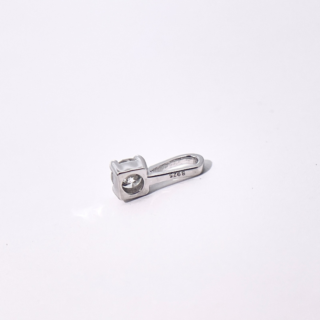 Diamanten er sat i en elegant firbenet fatning af 925 sterlingsølv med en luksuriøs rhodiumfinish. Sølvet er lavet af 92,5% rent sølv, forstærket med andre metaller for ekstra styrke. Rhodiumlaget beskytter mod oxidation og giver vedhænget en smuk, langvarig glans. 4 mm øjet gør det nemt at kombinere vedhænget med forskellige halskæder eller armbånd.