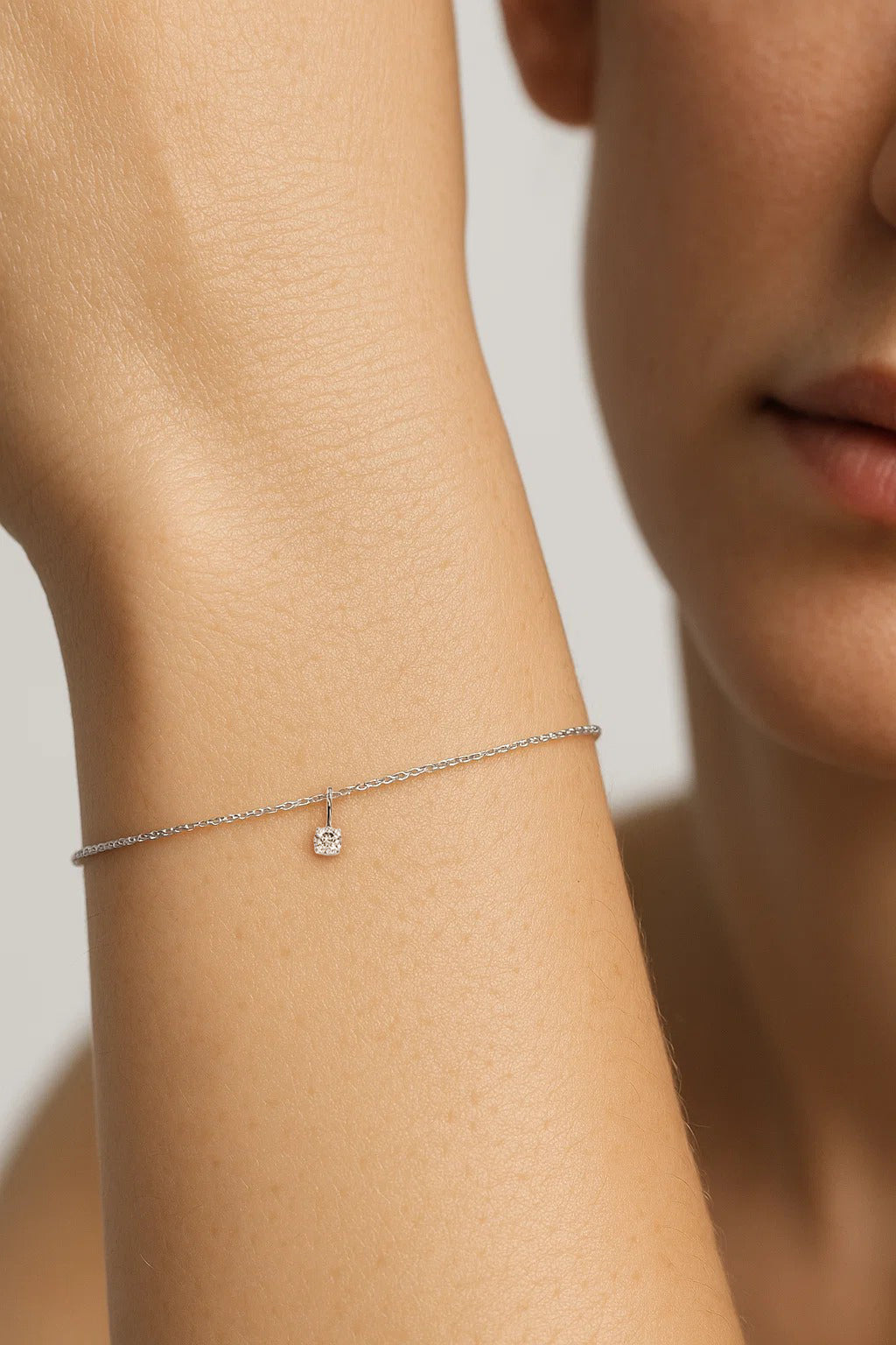 Det diskrete design og den 4 mm store øje gør vedhænget alsidigt; du kan kombinere diamanten lige så nemt med en halskæde som med et armbånd.